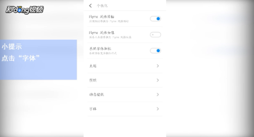 在弹出的界面中点击“字体”,在下一个界面中即可改变手机字体。