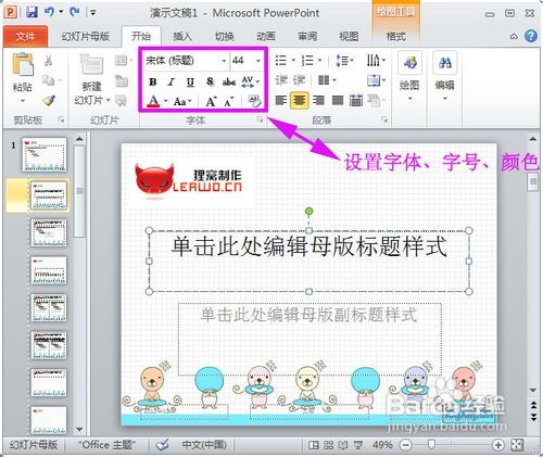创建模板设计演示文稿模板,最有效的方法是创建个性化的母版,在母版中设置背景、自选图形、字体、字号、颜色、动画方法等。如下操作:打开PowerPoint并新建一个空白的PPT文档,选择任意一种版式,通过视图→母版视图→幻灯片母版,打开母版进行编辑。...