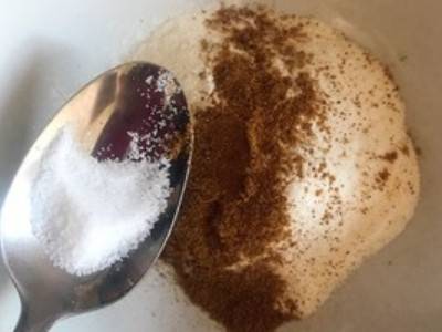 面粉倒入碗中,加入五香粉、盐,搅拌均匀。