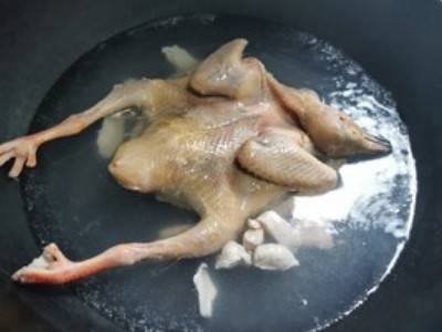 买回来的鸽子洗净,去掉爪子尖,入锅焯水后捞出。