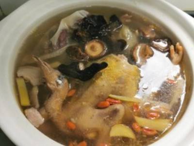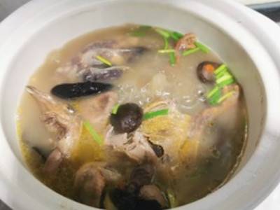 转小火炖三十分钟,再加入提前泡发的香菇、黑木耳。