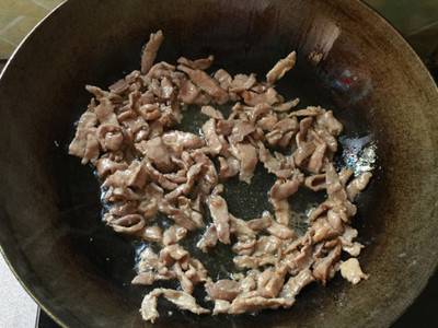 锅中放食用油,5成热时下瘦肉。滑炒变色后盛出备用。