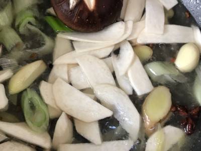 放入鲜牛奶、杏鲍菇、香菇、糖,煮至沸腾。