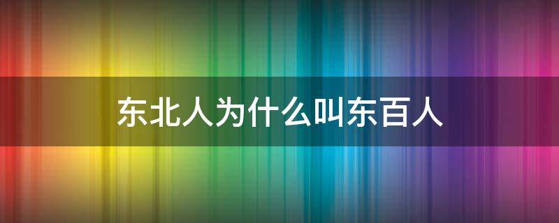 东北人为什么叫东百人(为啥喜欢叫东北人)