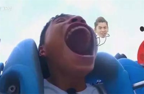 该梗最近再次走红网络是由于真人秀综艺节目《高能少年团》里面一张王大陆坐过山车被节目特效头加工放大后的一张张嘴大叫的惊恐照片,引发网友们的各种恶搞,不仅吃小孩,现在胃口更大了还开始吃过山车了。