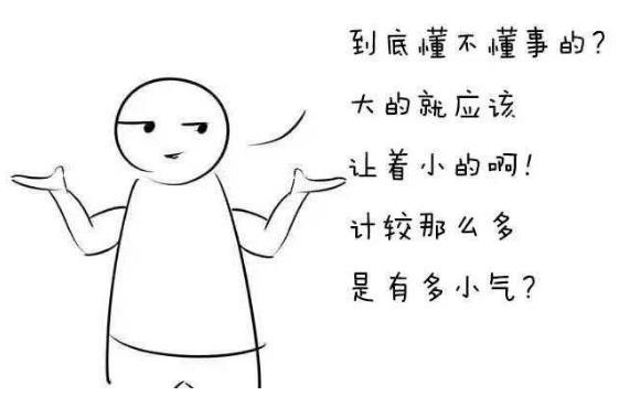 你去电影院看电影,坐在后面的熊孩子一刻不停地踢椅背,甚至把爆米花撒在你的头发上。你忍无可忍地回头,周围的人却劝你:“算了算了,他还是个孩子,跟孩子计较什么呢?”