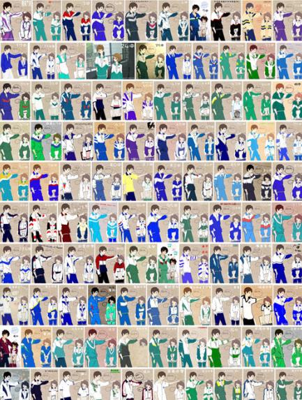 而网友接力PS的对象,正是画中两名学生身穿的校服。连日来,网上已出现各校校服的版本。有网友在网上找不到自己母校的版本,索性自己动手制作。毕业于21中的网友“机车小愤儿踢”就花了将近6个小时,将21中的长、短袖运动服和礼仪服的三个版本全部画出来,供校友们分享。
